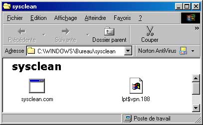 Lancez maintenant le fichier sysclean.com qui se trouve dans le dossier créé (en cliquant 2 x dessus). Si un message d'erreur apparaît, c'est que le fichier de la liste de virus n'est pas présent dans ce dossier et l'installation doit être recommencée.